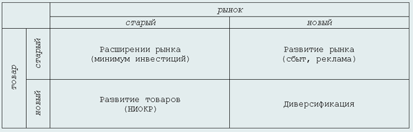 Для облегчения выбора стратегии может использоваться матрица Ансоффа.