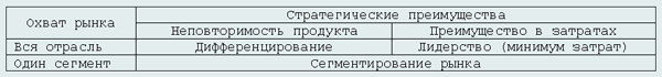Для крупных фирм целесообразна обработка рыночной ниши или всего рынка через лидерство в затратах или дифференцирование продукта (эффект от масштаба производства).
