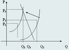 Уровень повышения с Q1 до Q2 означает, что цены возросли бы с P1 до P2, если бы не происходило удорожание ресурсов. Удорожание ресурсов способствует смещению линии влево и вверх, и следовательно уровень цен повышается до P3.